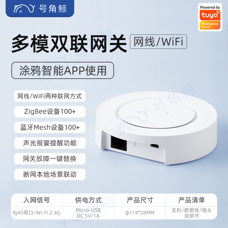 > tuya涂鸦智能网关ZigBee3.0无线多模有线多功能蓝牙Mesh中控主机