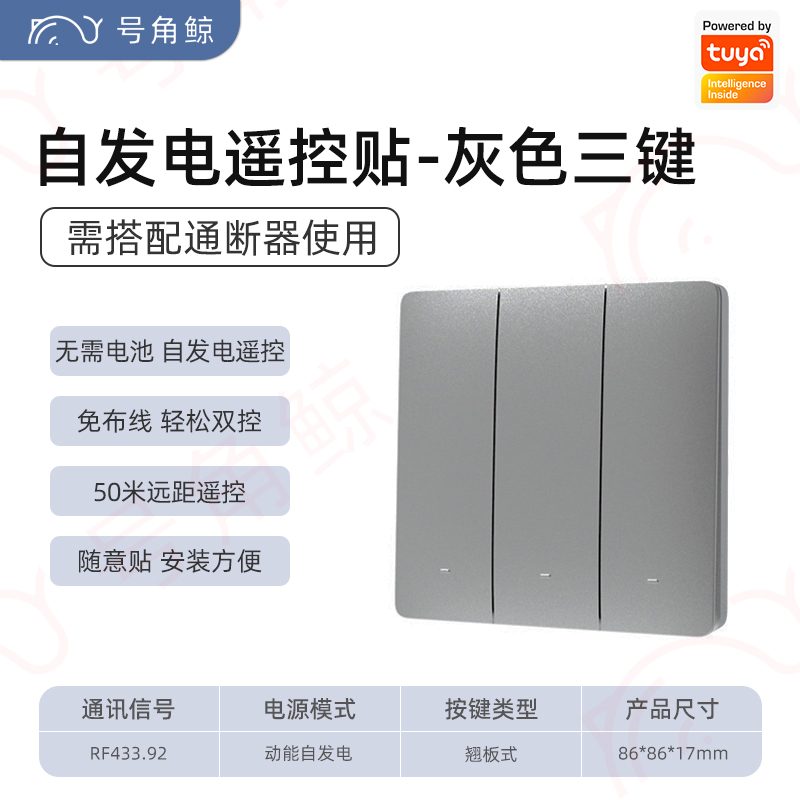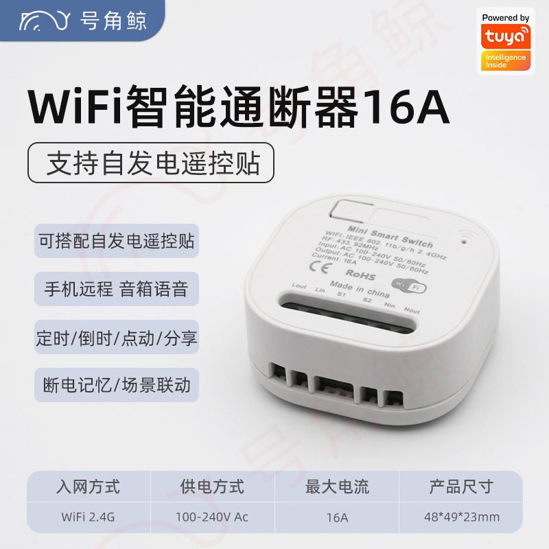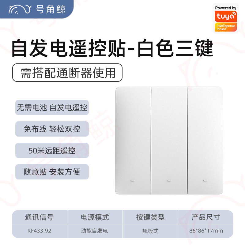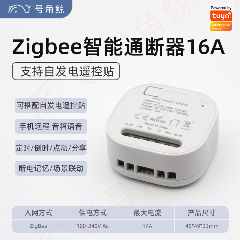 > 涂鸦Zigbee智能通断器开关控制灯具电源无线自发电随意贴遥控双控