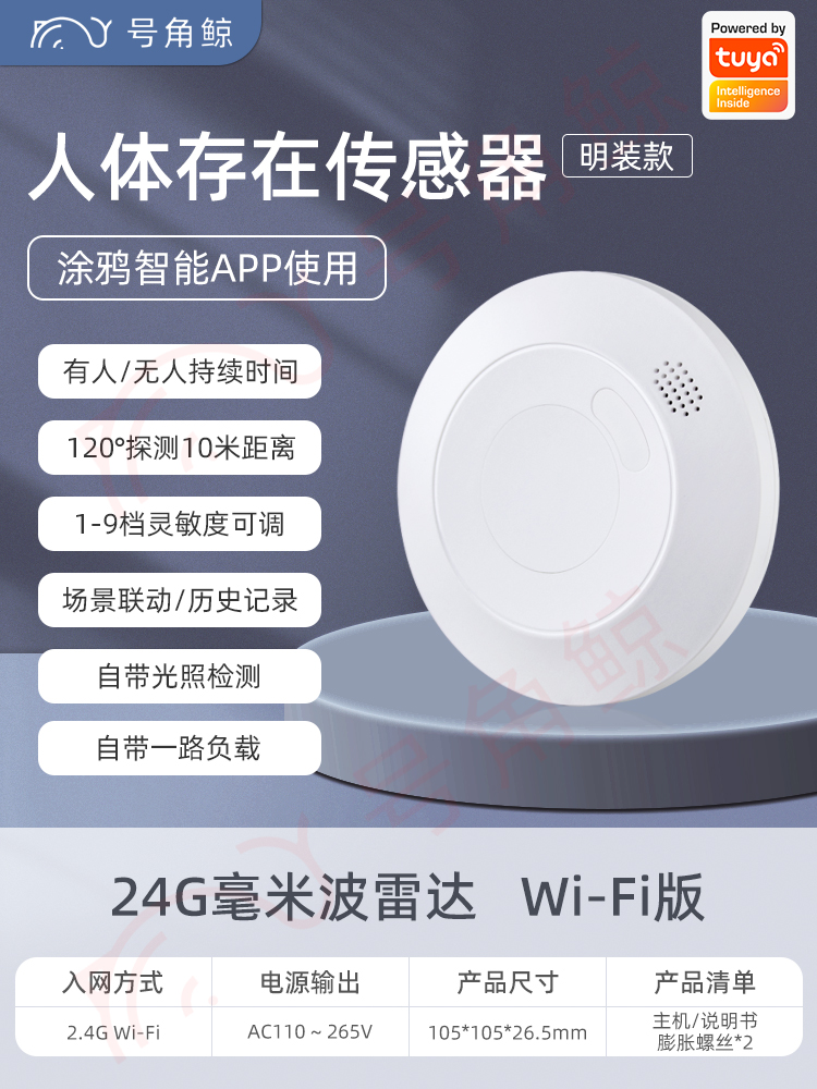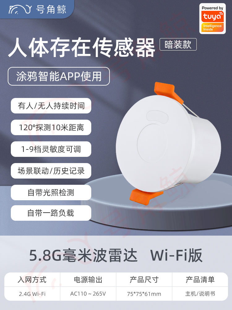 涂鸦ZigBee智能毫米波雷达人体存在传感器光照开关灯感应24G顶装