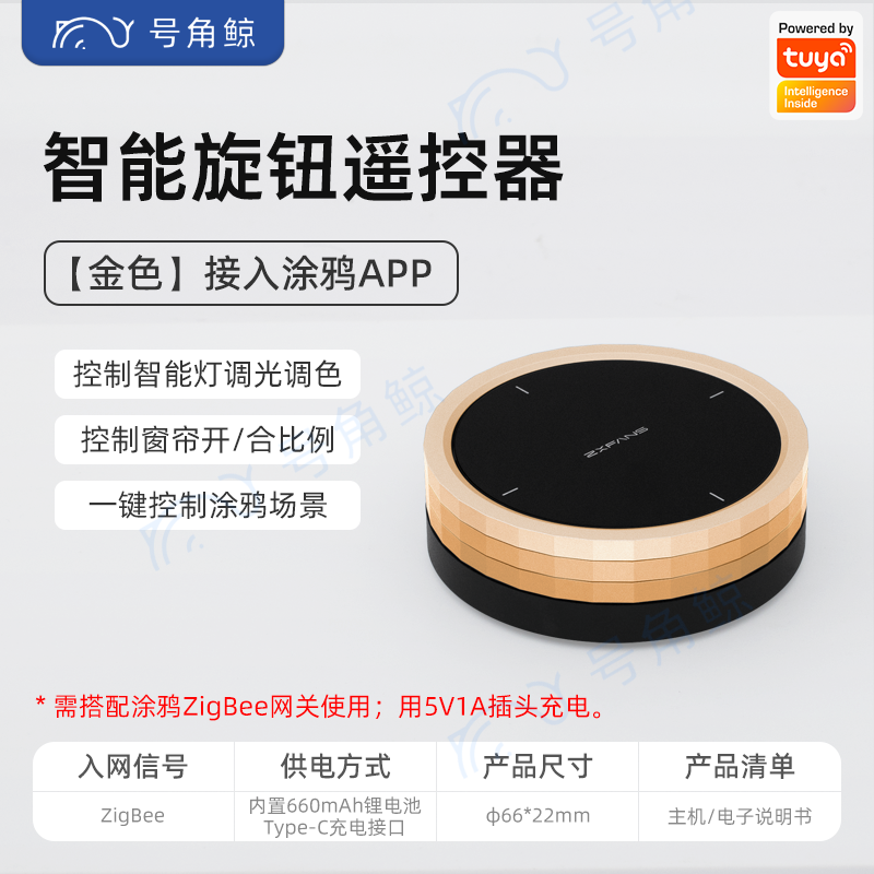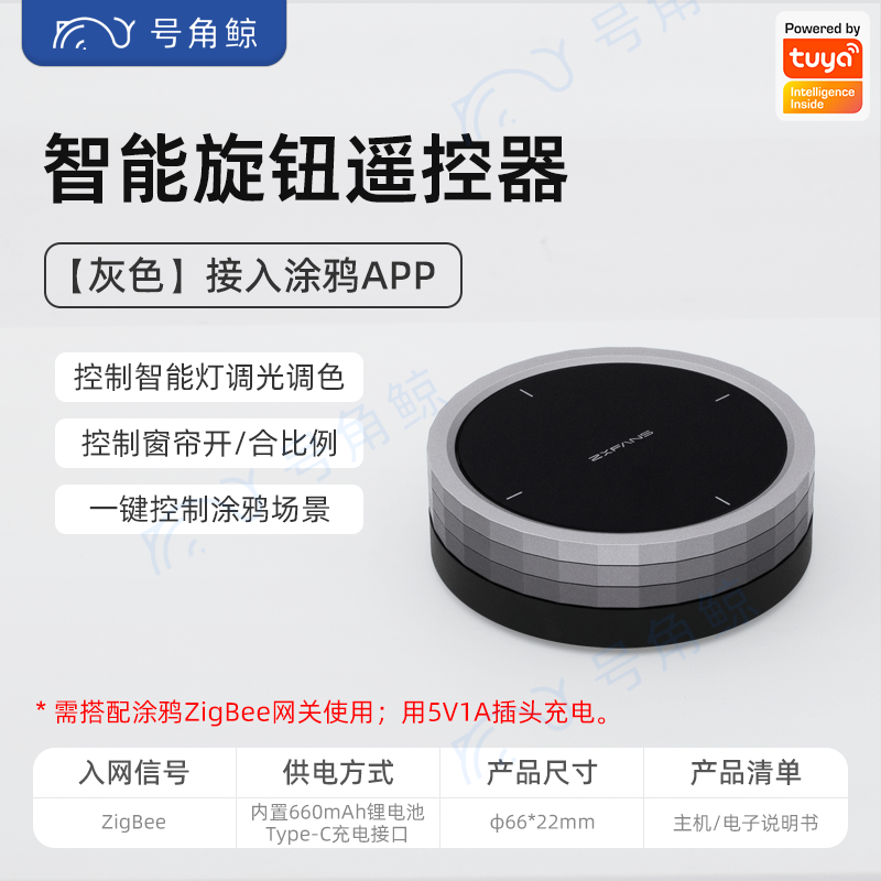 > 涂鸦Zigbee智能旋钮无线开关灯调光调色明暗四键情景窗帘比例遥控