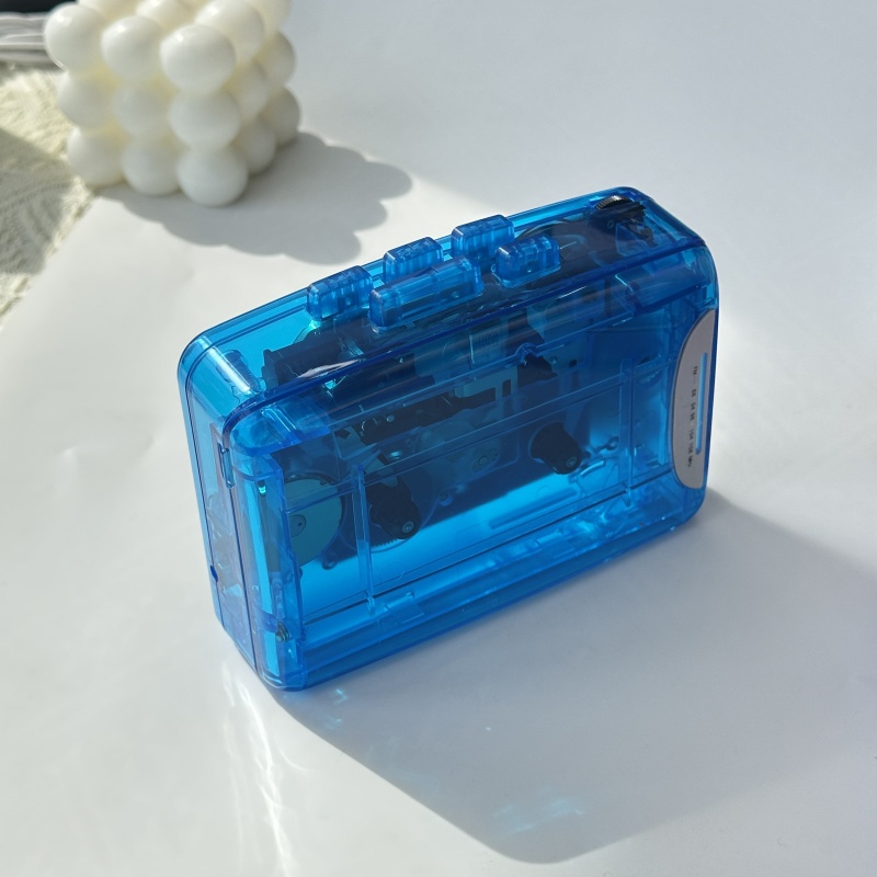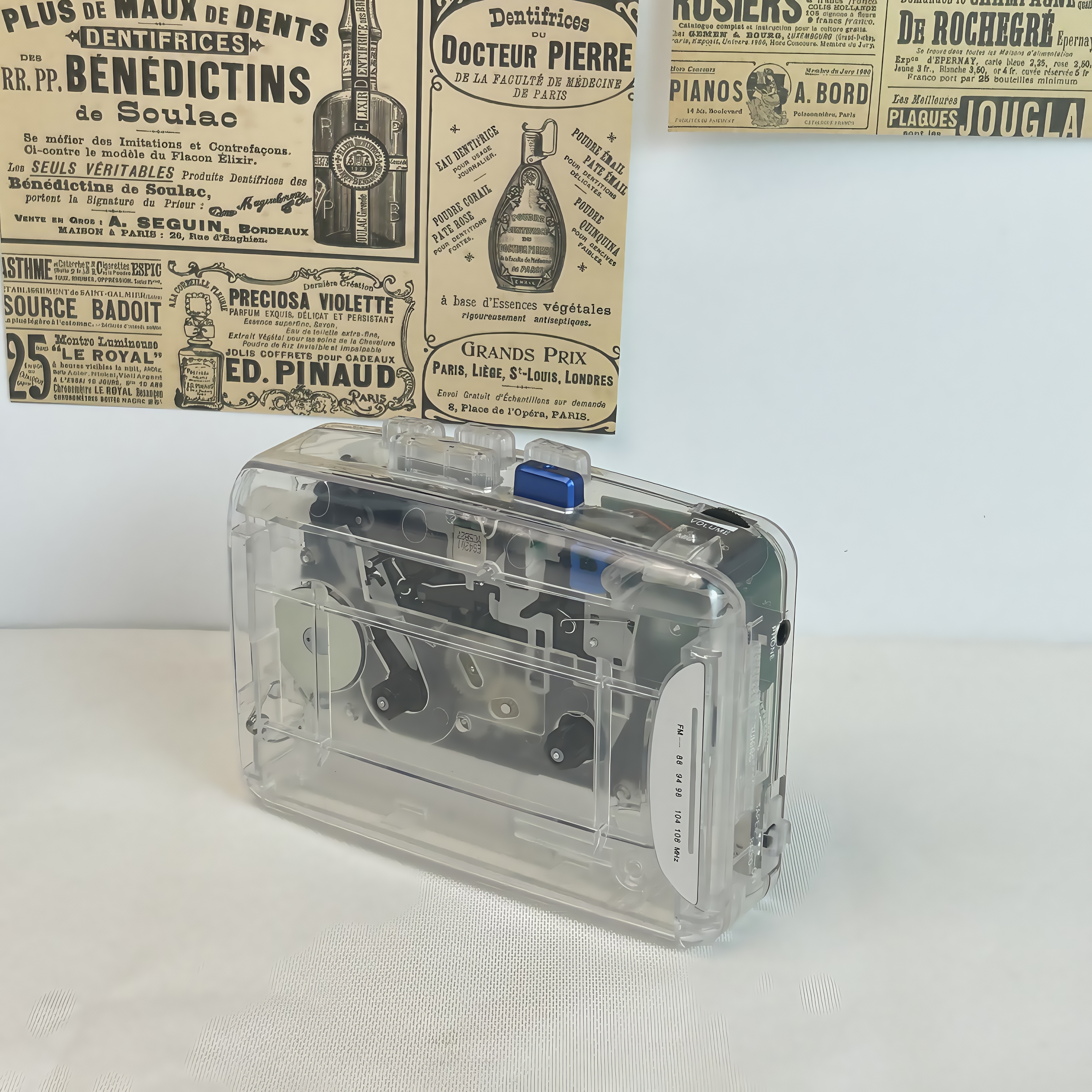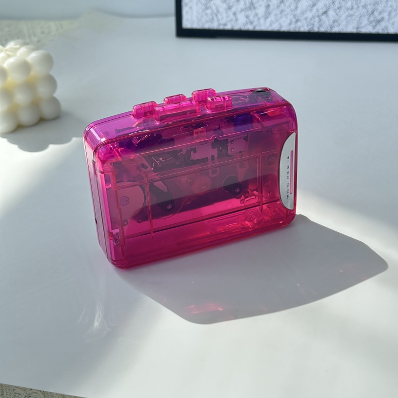 > 便携式复古磁带机透明随身听耳机收音机卡带机英语听力播放器礼物