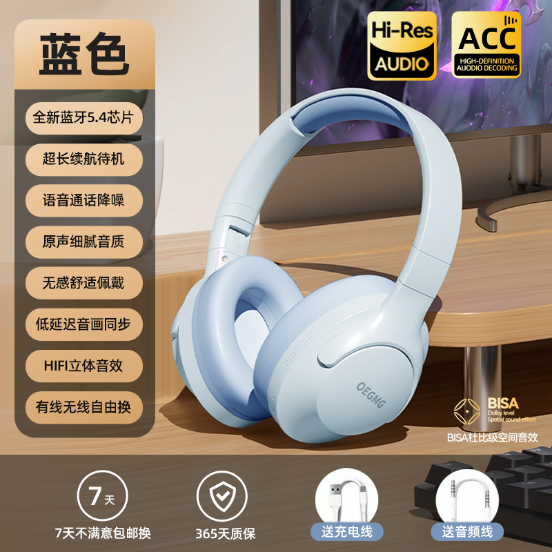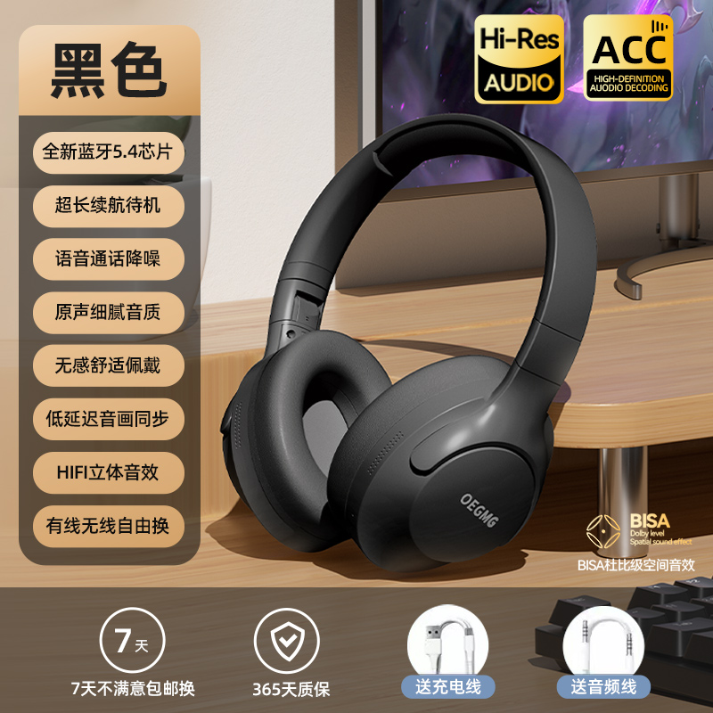头戴式蓝牙耳机无线电竞游戏电脑手机通用重低音耳麦插线降噪带麦