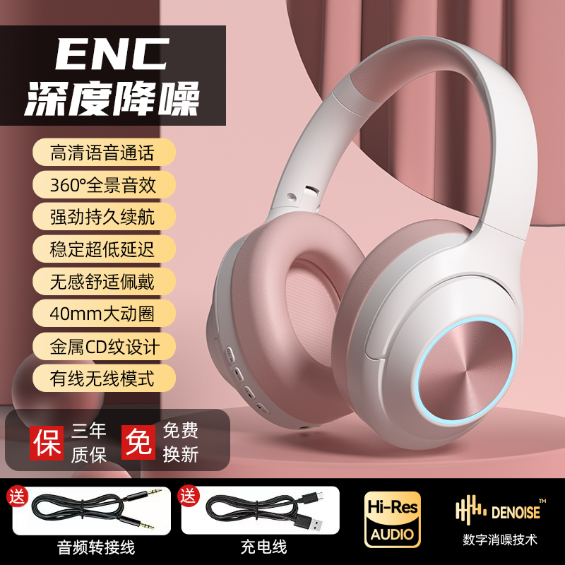 > 电竞游戏头戴式蓝牙耳机无线电脑手机高颜值音质耳麦插线降噪带麦