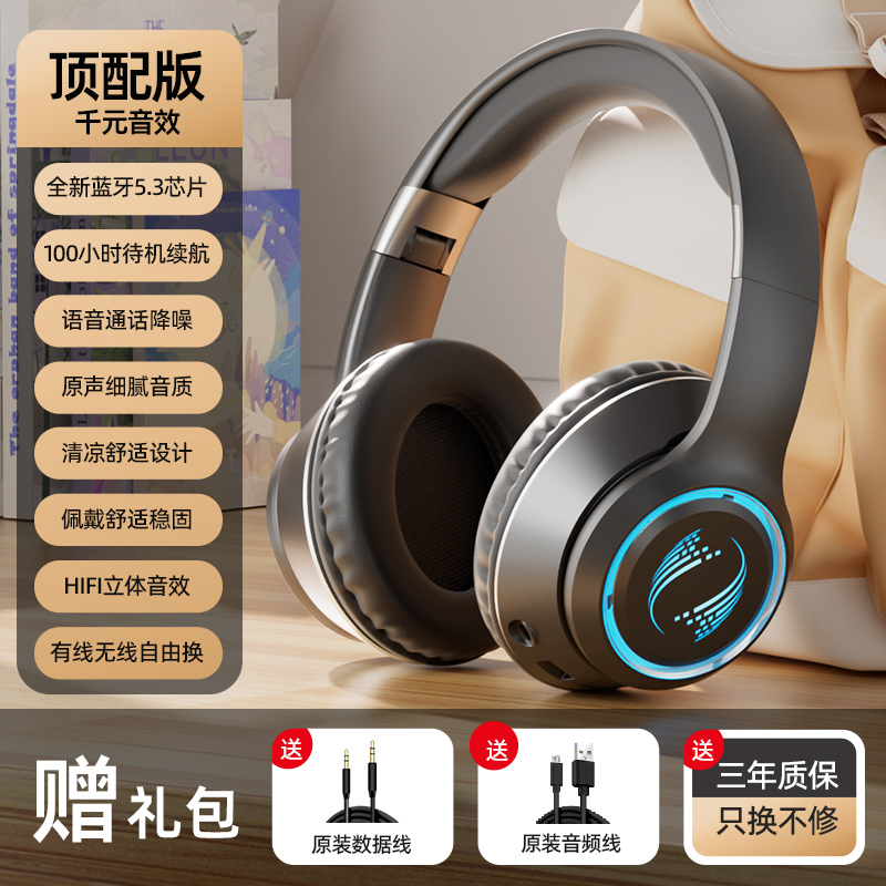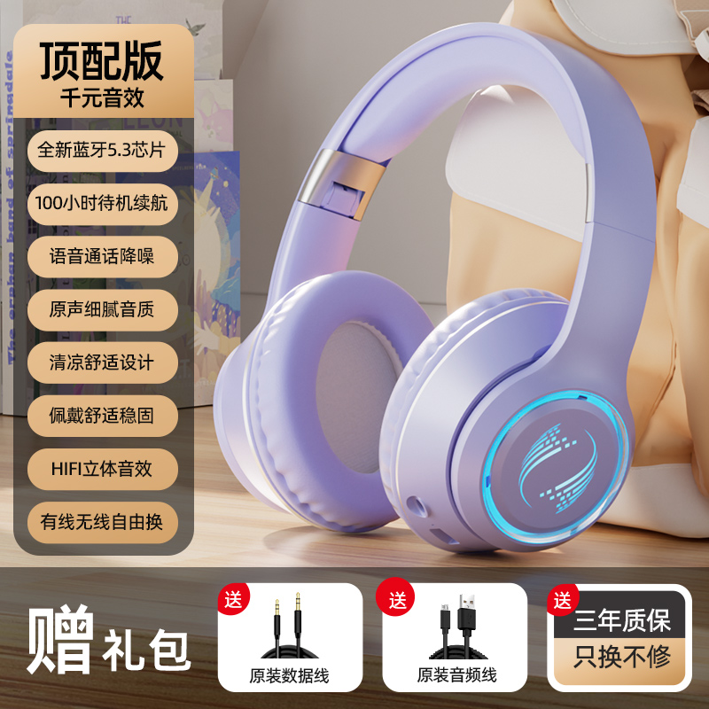 > 电竞蓝牙耳机头戴式高颜值全包耳重低音电脑游戏无线有线超长待机
