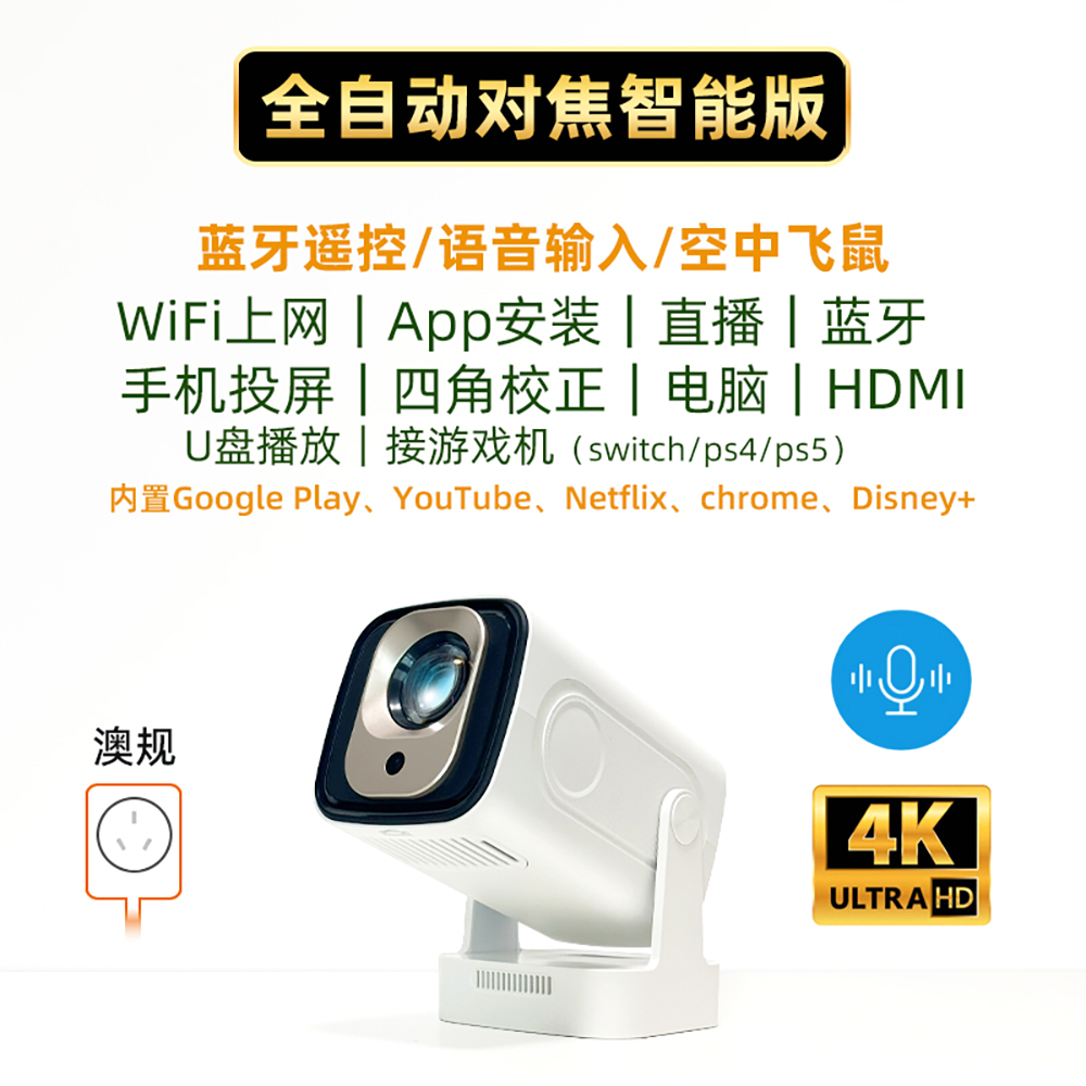 > 海外版投影仪手机ps5/switch投影仪全自动对焦小型语音投影仪国际版家用卧室投影机可用投天花板projector