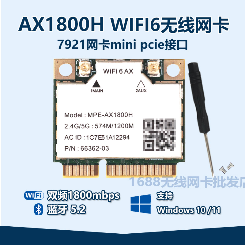 > WiFi6 MT7921 MINIPCIE 5G双频AX1800H内置无线网卡1800M 8852BE