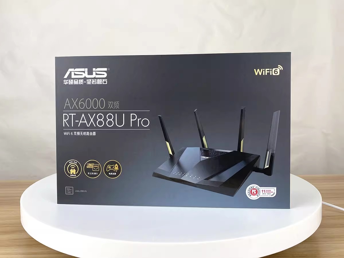 1. 新鲜到货,RT-AX88U PRO 旗舰级高端路由器!可喜的是本次到货为国行彩包, 本次到货国行彩盒包装 (专柜展示,打开包装而已) ,全套原装附件,绝非二手返修机!提供官方一年全国联保服务。商品因库存和运输原因,原厂包装盒可能会有轻微的运输痕迹。我们定义为95新以上,【介意者勿拍】2. 该路由器配置强大,双频6000M,疾速1.8G四核处理器!性能和可玩性相当强。支持AIMESH功能!