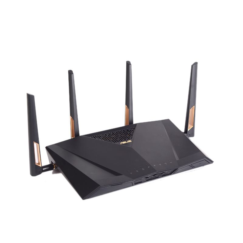 RT-AX88U:1.8GHz四核处理器,1G内存,256M闪存,双频6000M,2.4G为1148M,5G是4804M,1个千兆WAN口,8个千兆LAN口,四根外置天线,支持Aimseh组网。