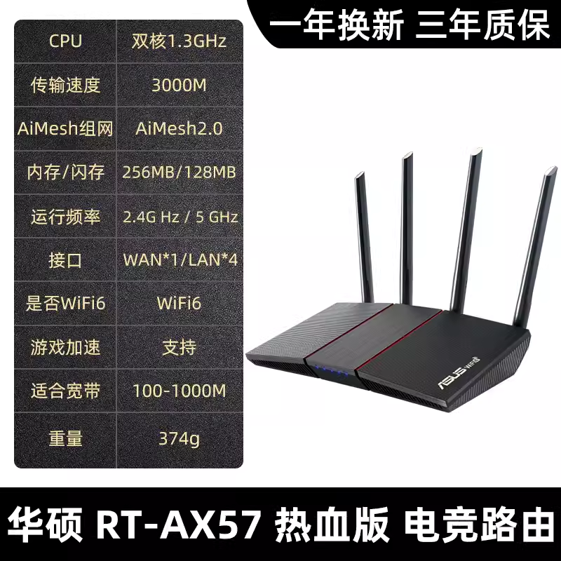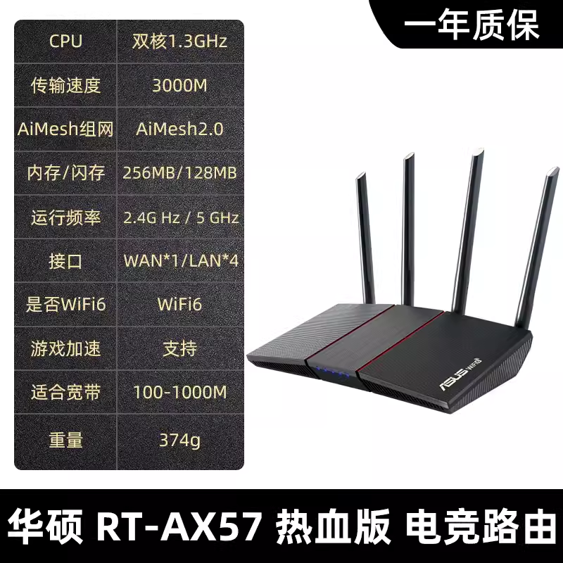 > ASUS华硕RT-AX57U千兆端口wifi6家用高速电竞无线路由器mesh