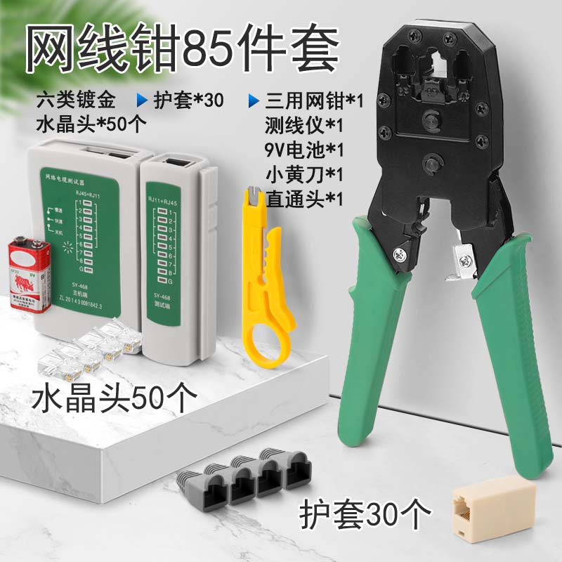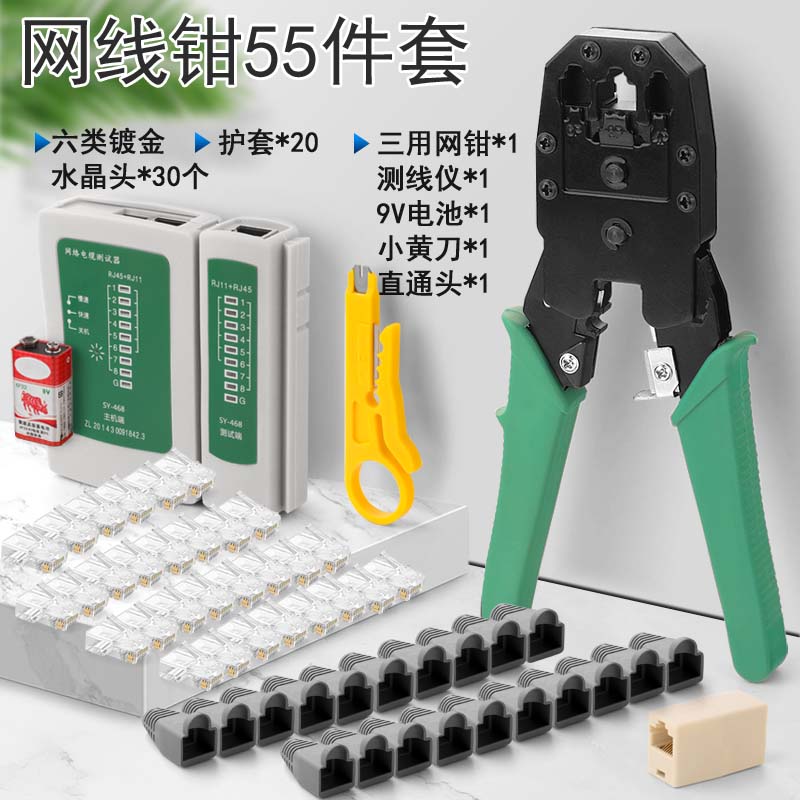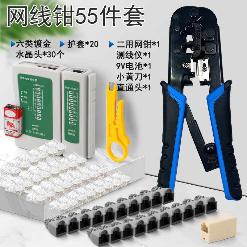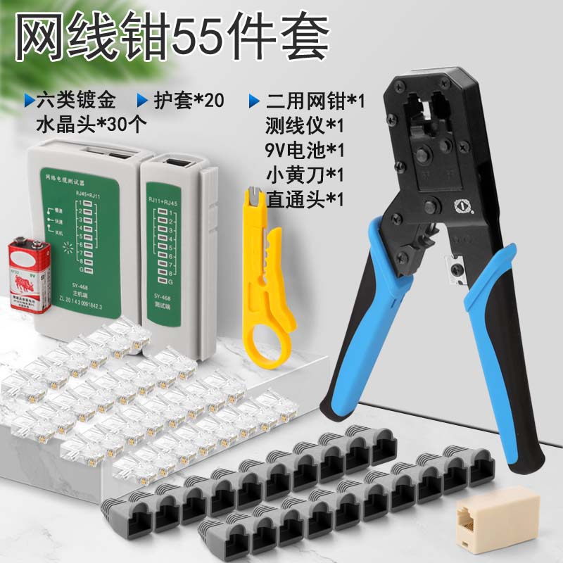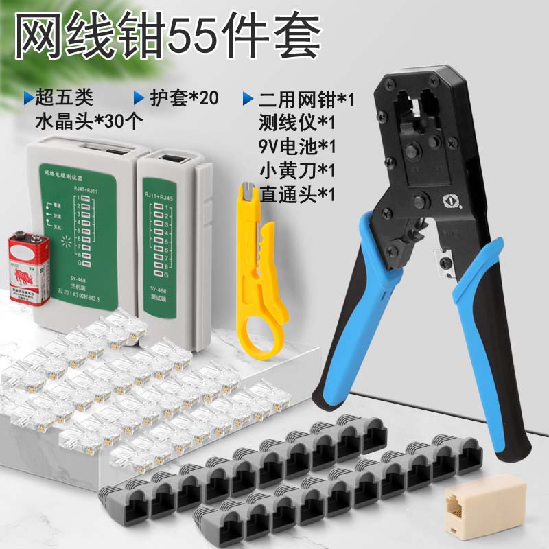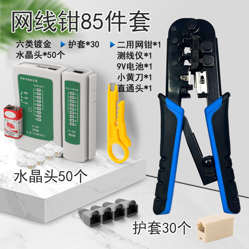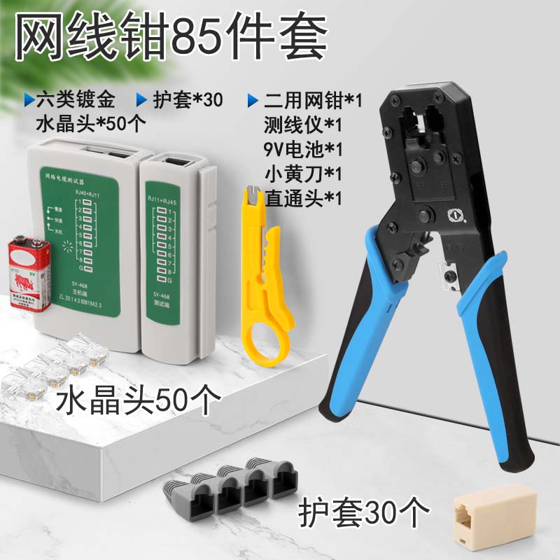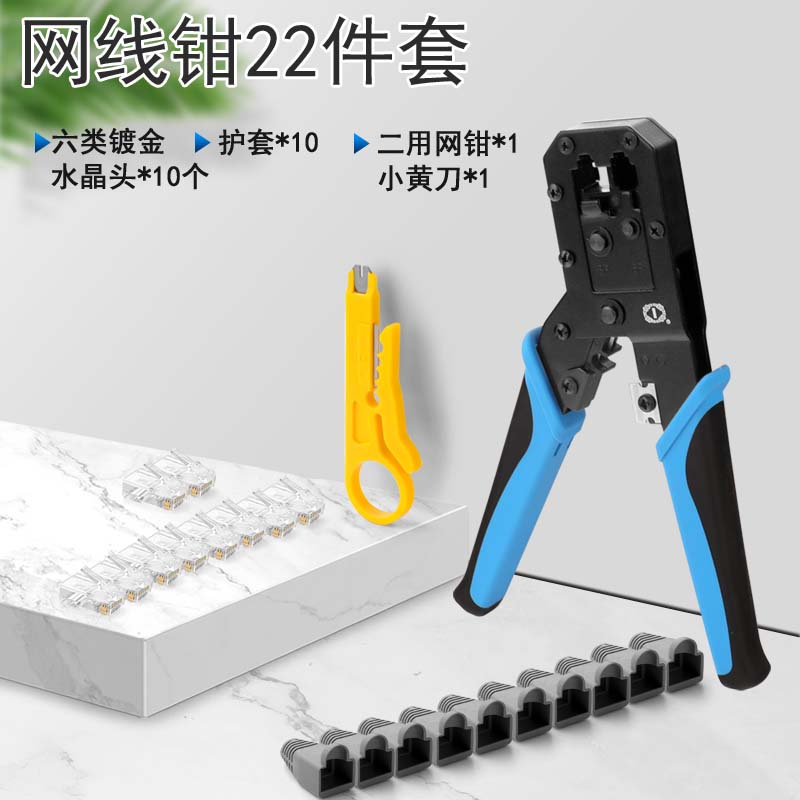 > 家用多功能网线钳套装水晶头压线钳家用五类六类专业级压接网线钳