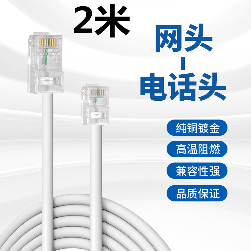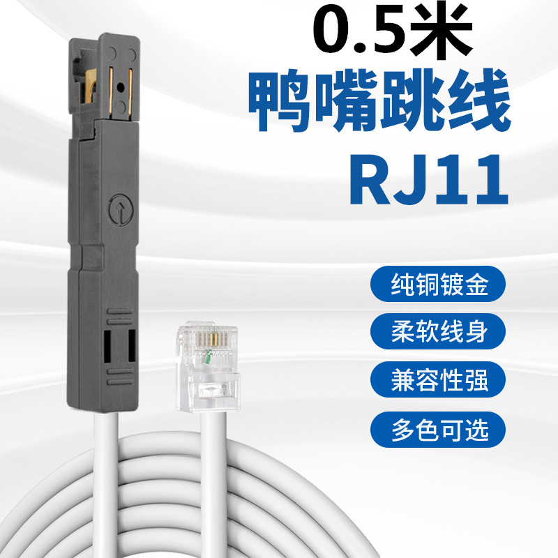> 电话鸭嘴跳线纯铜RJ45-1对110型语音检测线RJ11头各型号米数可定