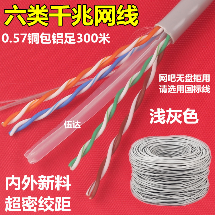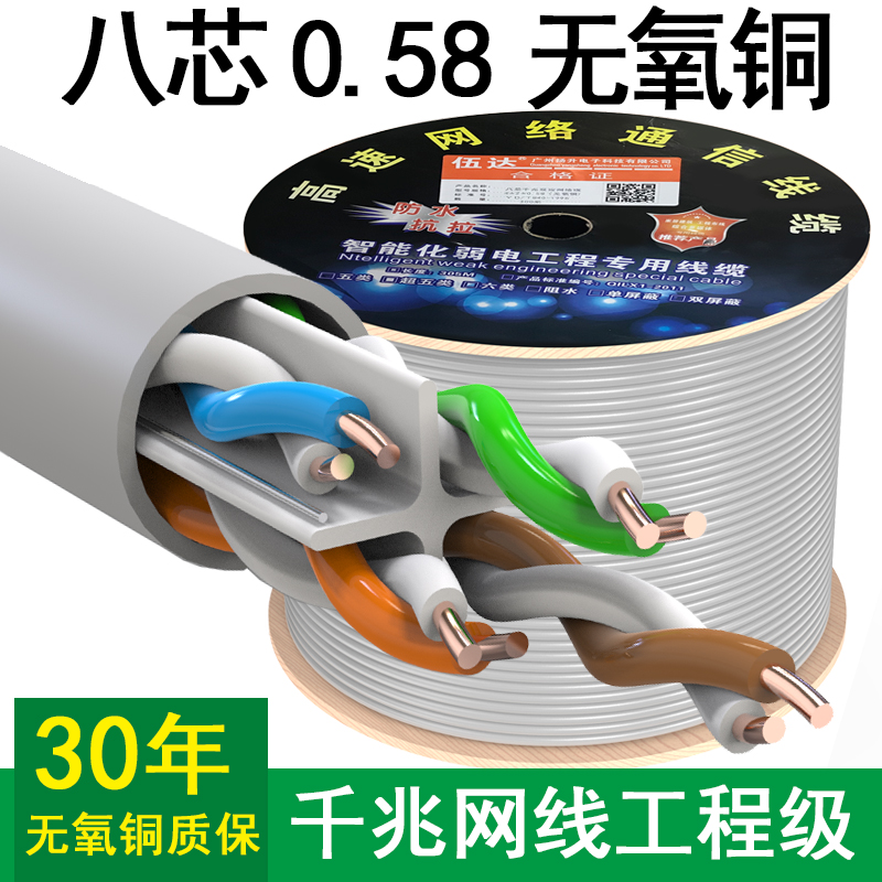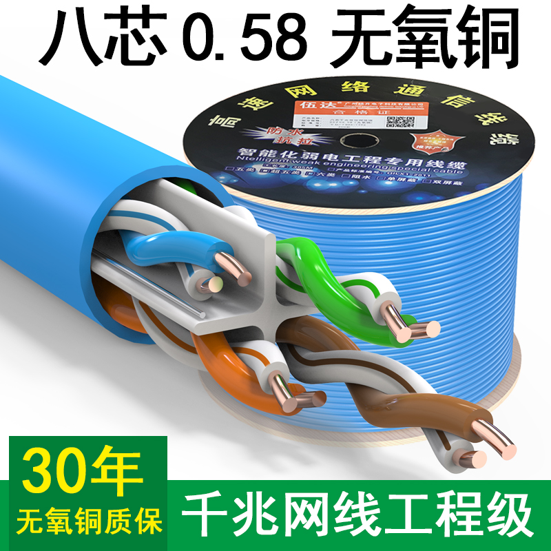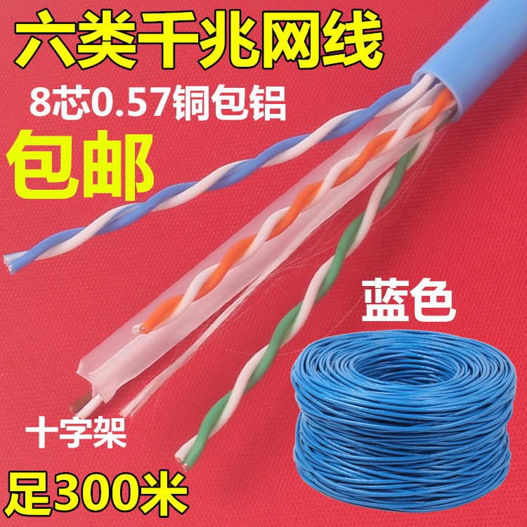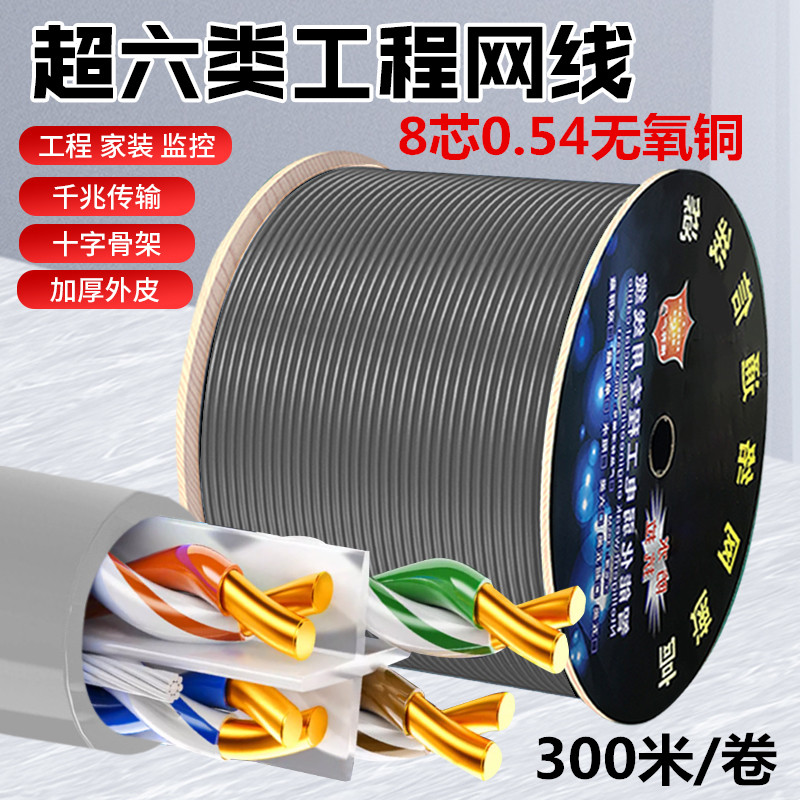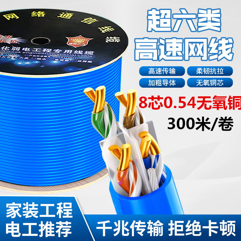 > 纯铜超六类网线千兆家用高速Cat6类监控网络线POE无氧铜300米整箱