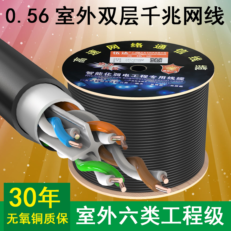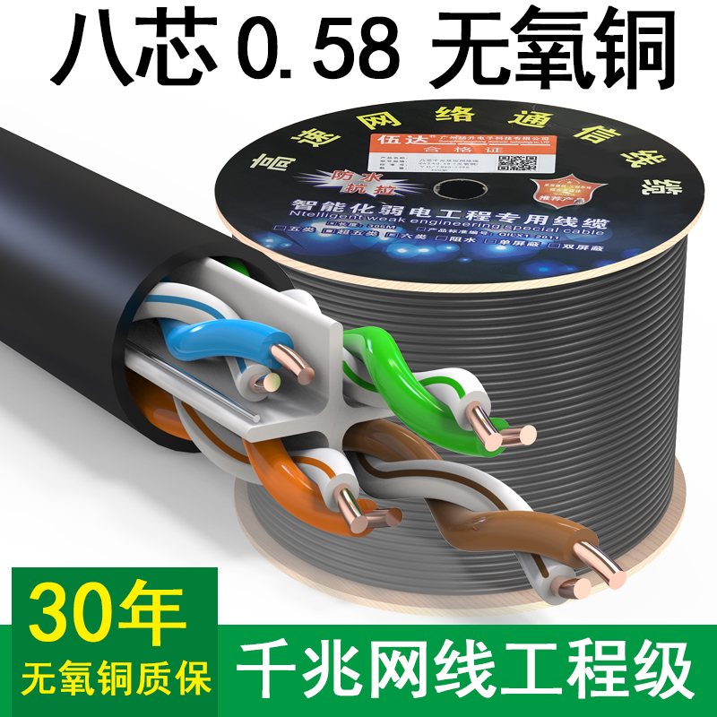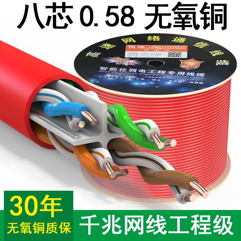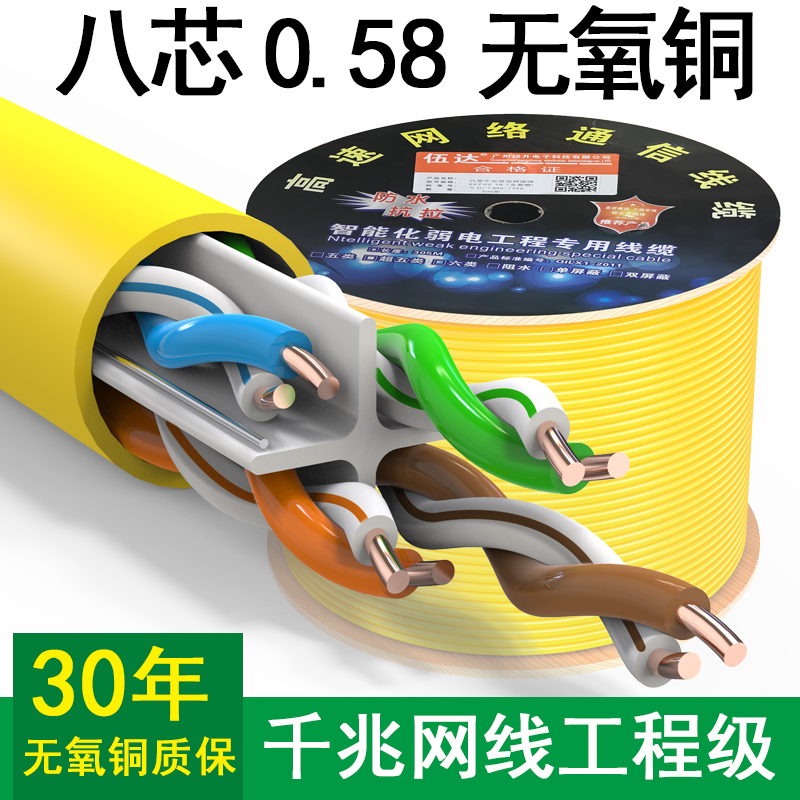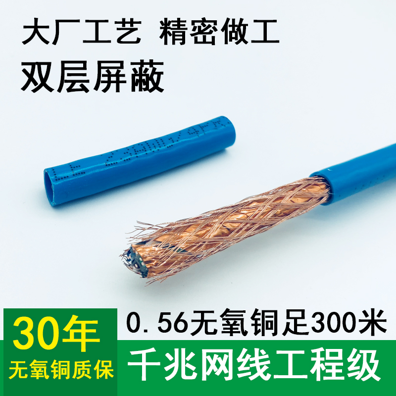 > 纯铜超六类网线千兆家用高速Cat6类监控网络线POE无氧铜300米整箱