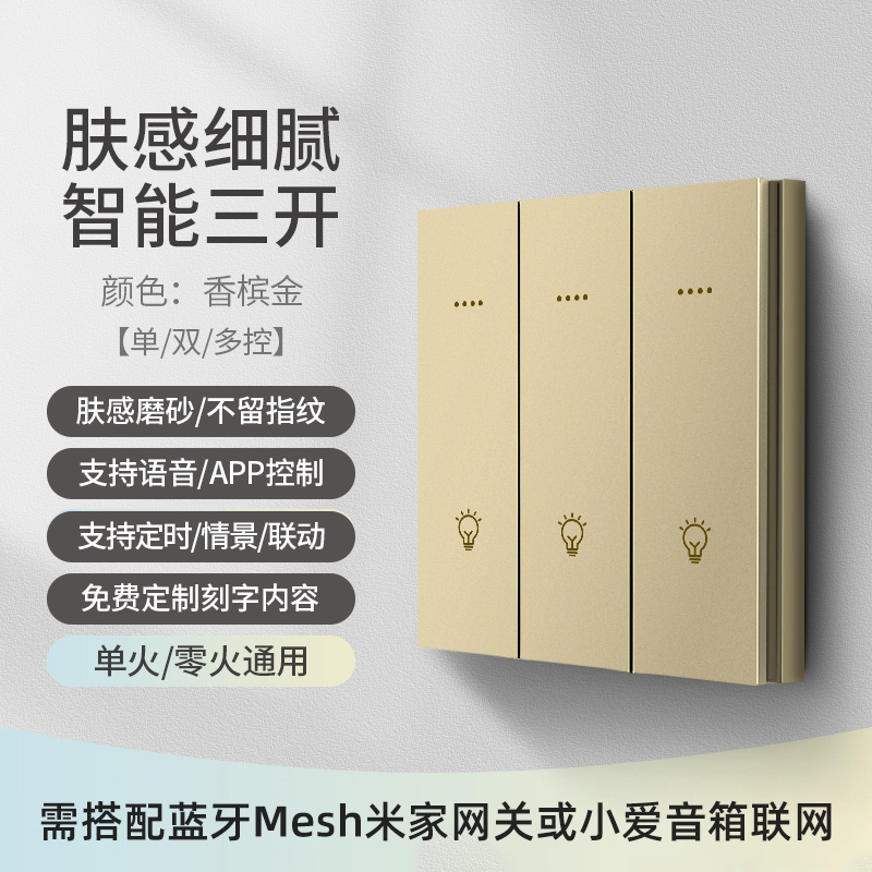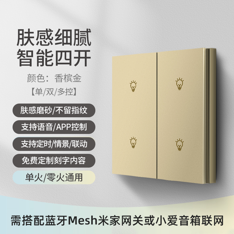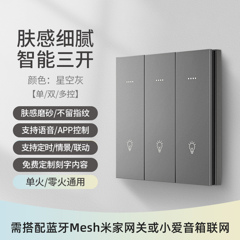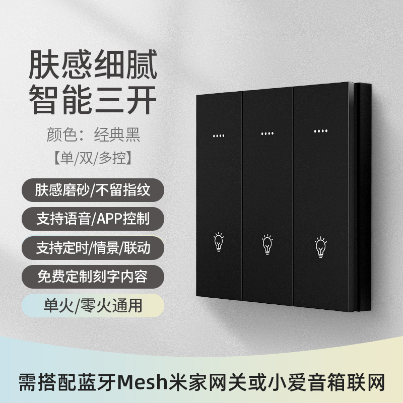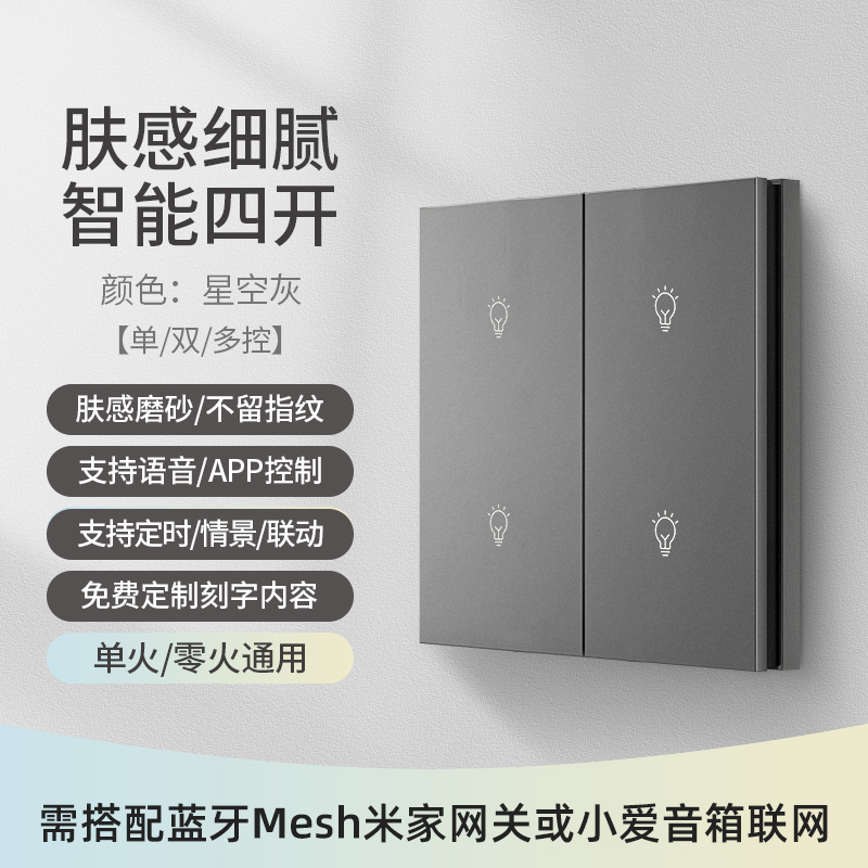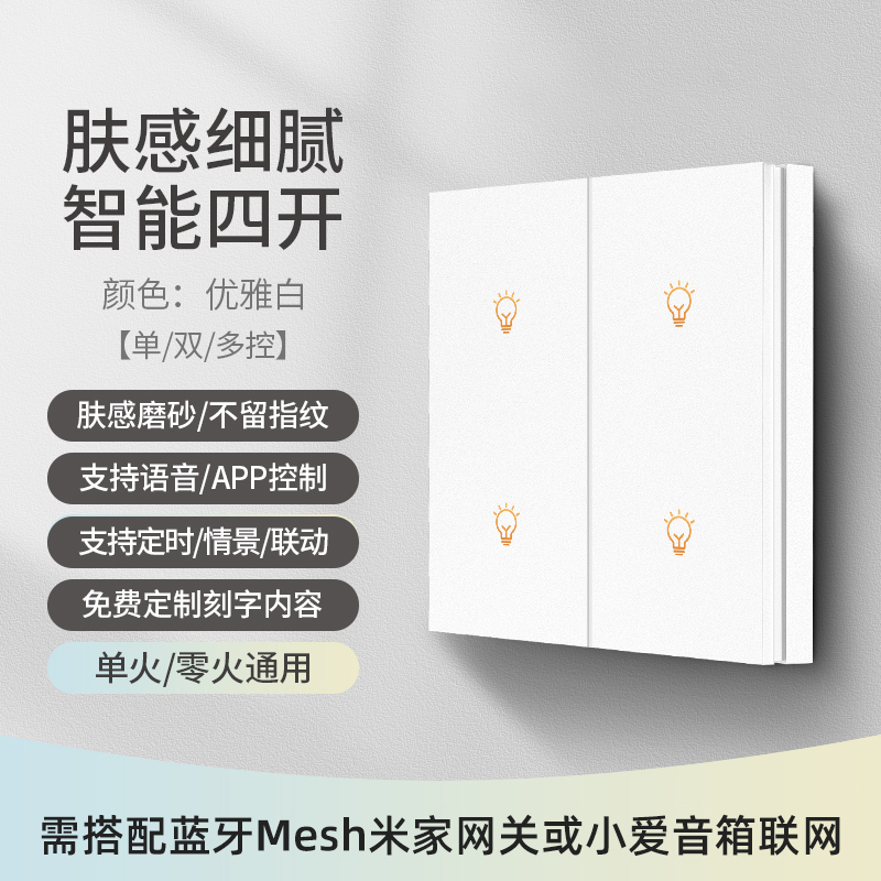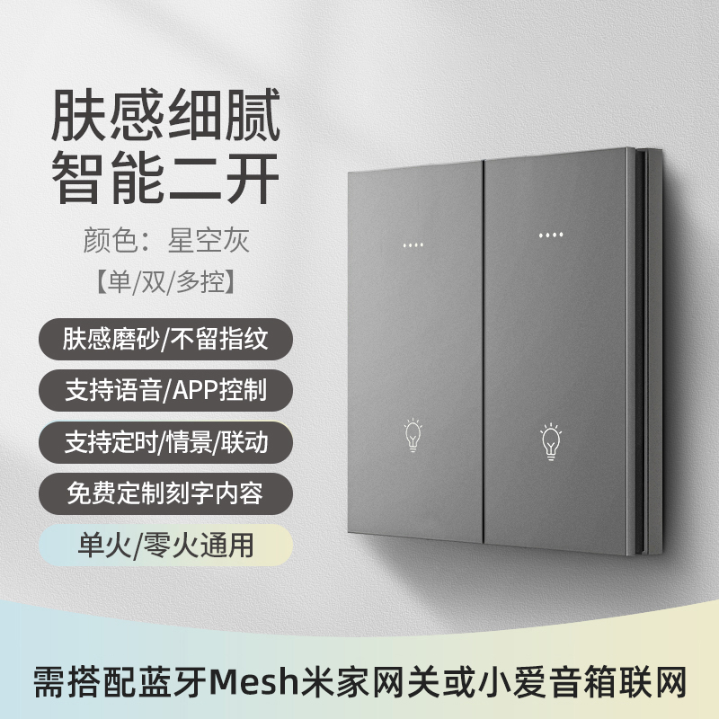 Mesh2.0已接入米家APP智能开关肤感面板单火双控远程小爱语音凌动