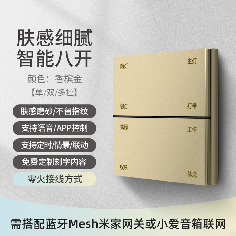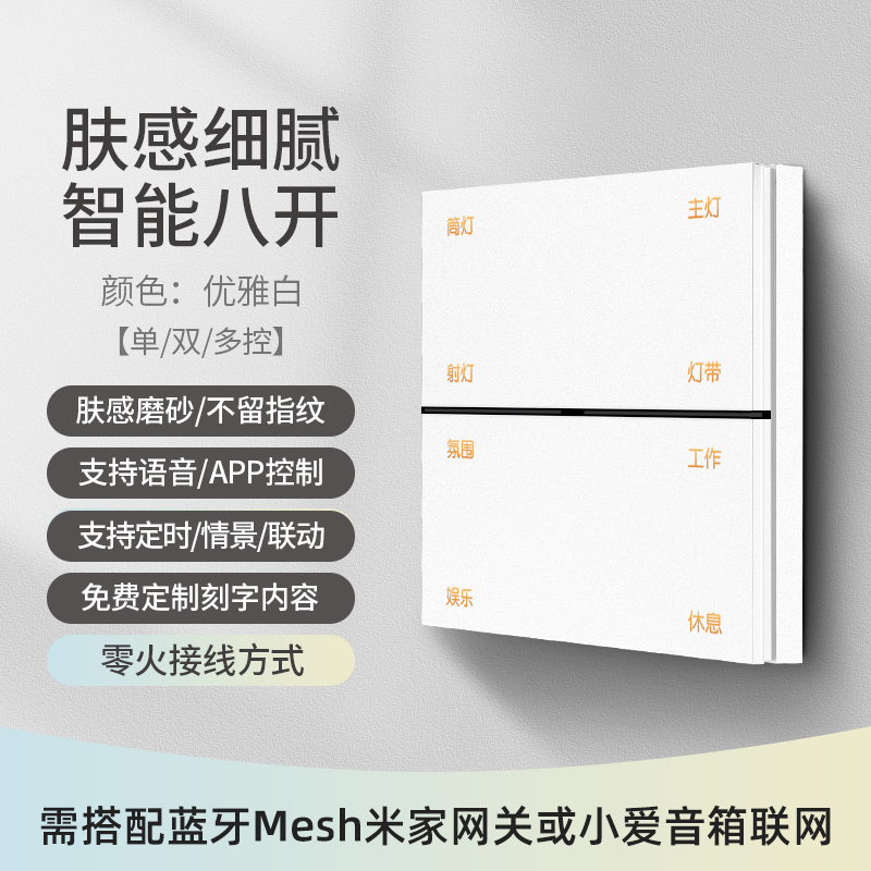 蓝牙Mesh2.0已接入米家八键智能开关肤感面板小爱双控凌动转无线