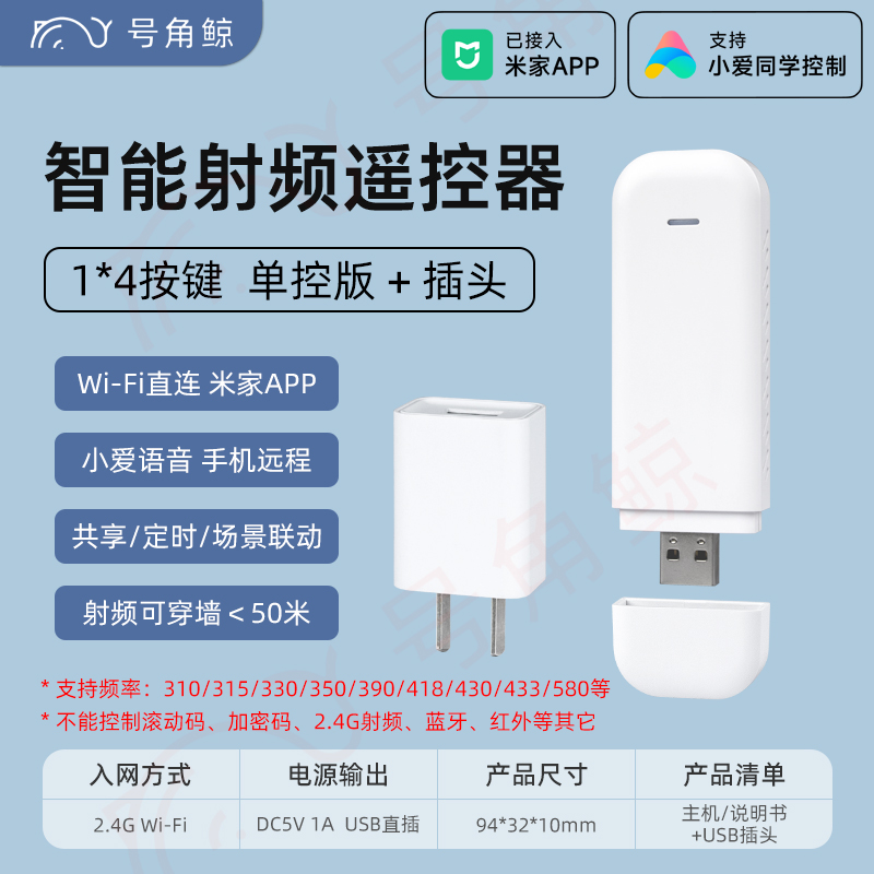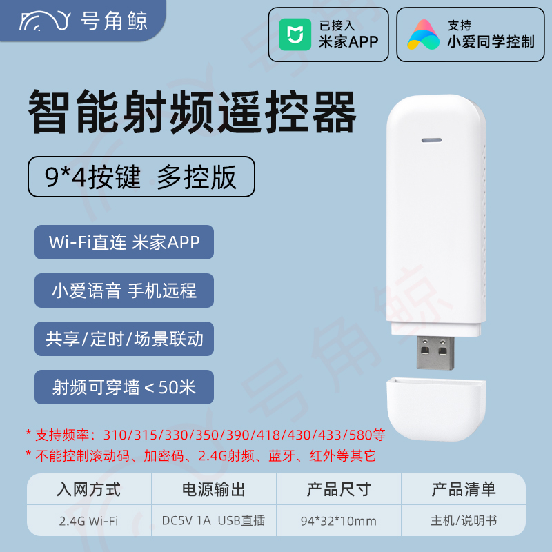 已接入米家WiFi智能射频遥控器433拷贝手机小爱电动卷帘门窗衣架