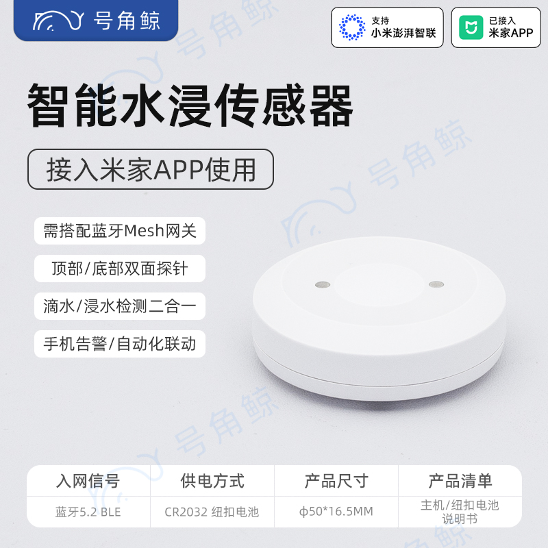 > 智能水浸传感器漏水探测器手机远程告警联动关阀门已接入米家APP